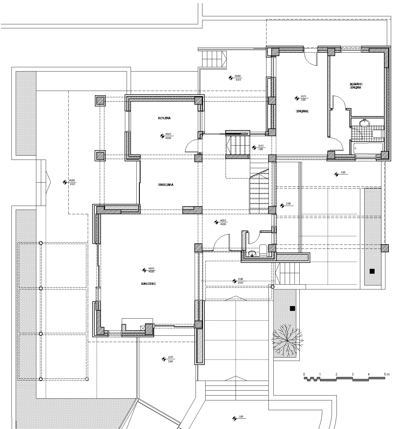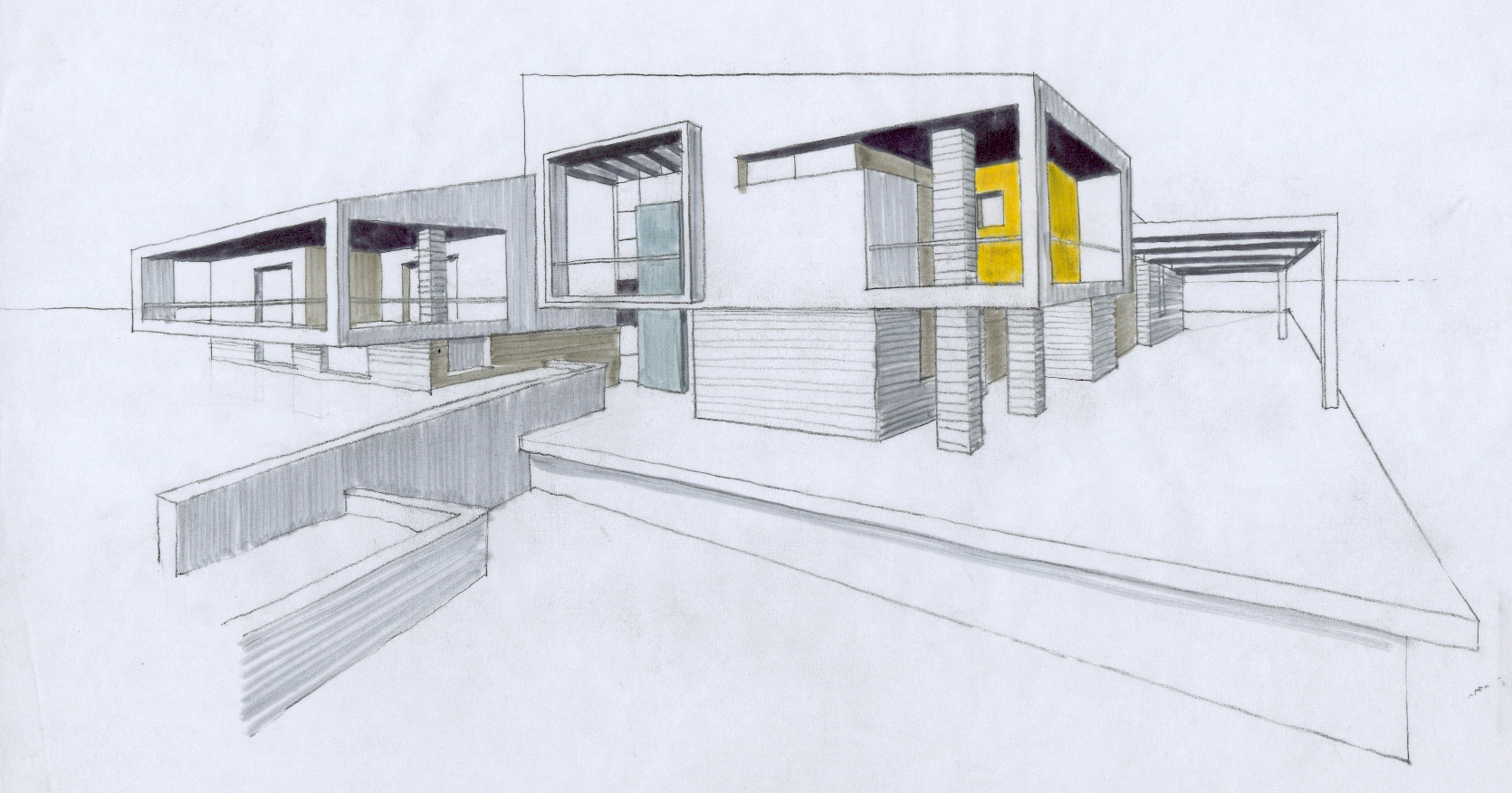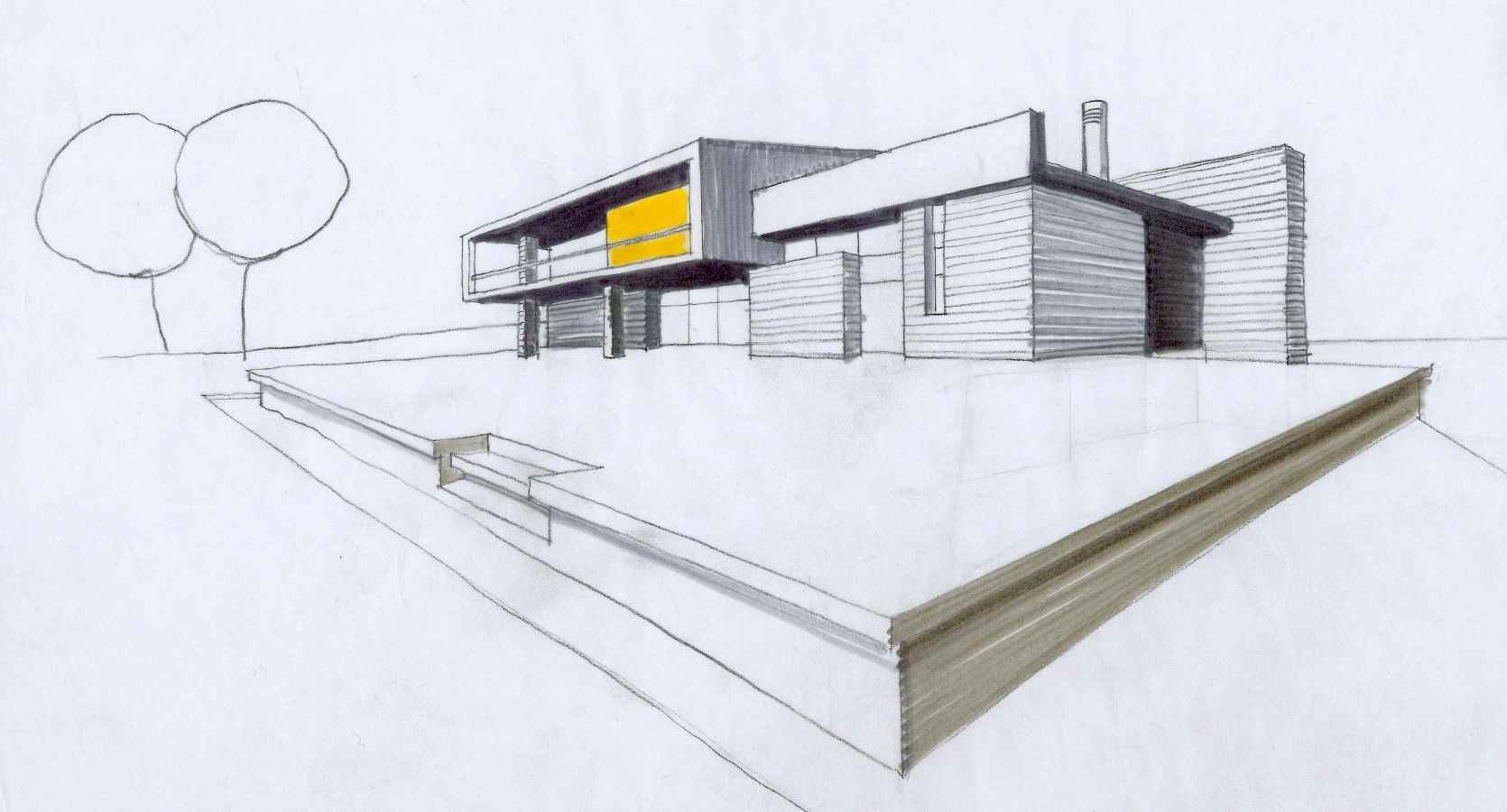 The detached house is organized in three large volumes which are hinged at the center with the lobby, the circulation space and vertical communication space. The ground floor is developed on two levels with little difference in level and includes the entry and the living rooms on the first level and two bedrooms with bathroom on the second one. The first floor contains the main bedroom with the necessary auxiliary spaces. All the main sites expand externally with large semi-outdoor spaces and balconies.