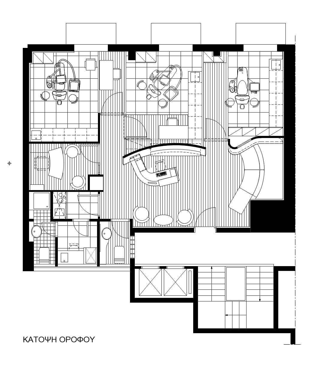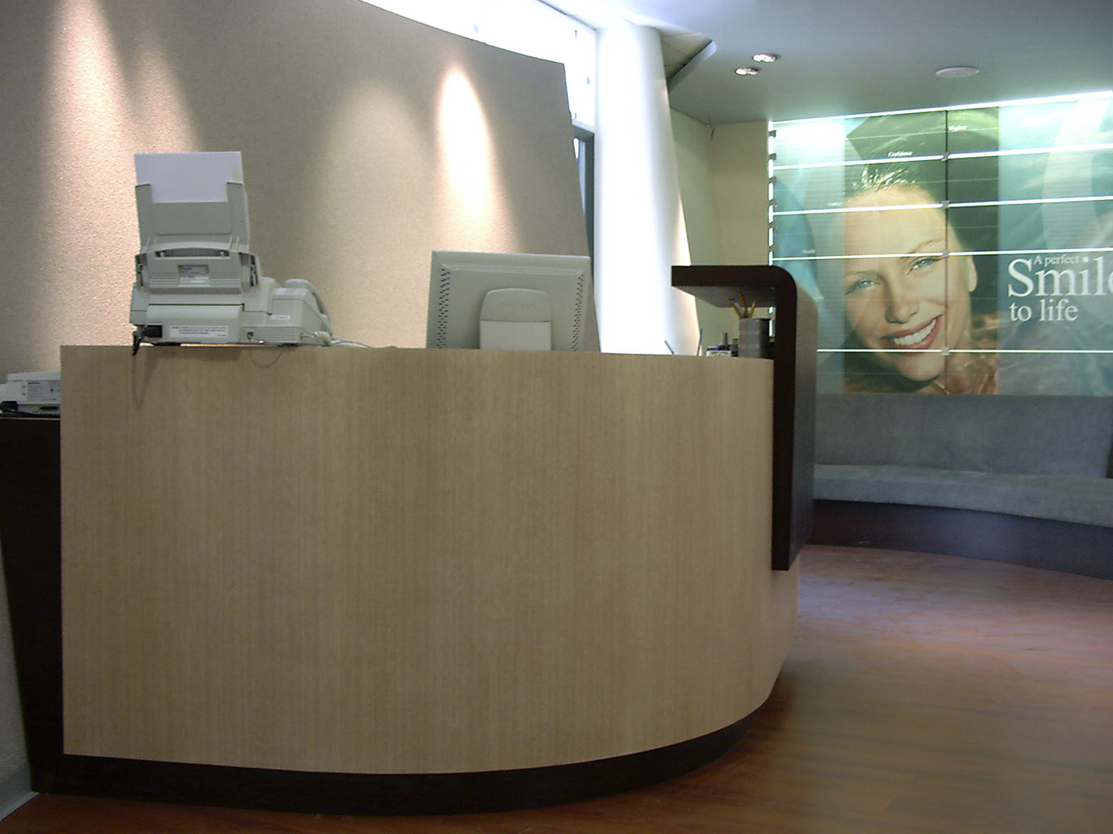 The clinic, providing dental services, is situated within the premises of a landmark building in Aristotelous square, Thessaloniki centre. The surgery serves daily a lot of people and emphasis was given on the reception and the waiting area. The space features intense surfaces, pleasant lighting and special details in bold lines, in both the walls and the furniture.