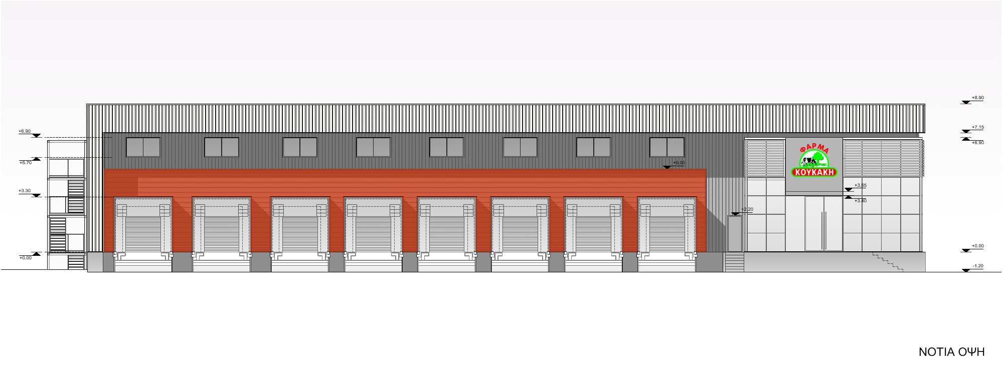 The building operates as a unit for temporary storage and distribution of dairy products. Two-storey cold storage rooms and the shipment area occupy the biggest part of the building. The rest of the building shelters the administrative office areas of the company distributed at two levels with a total area of 740 m2.