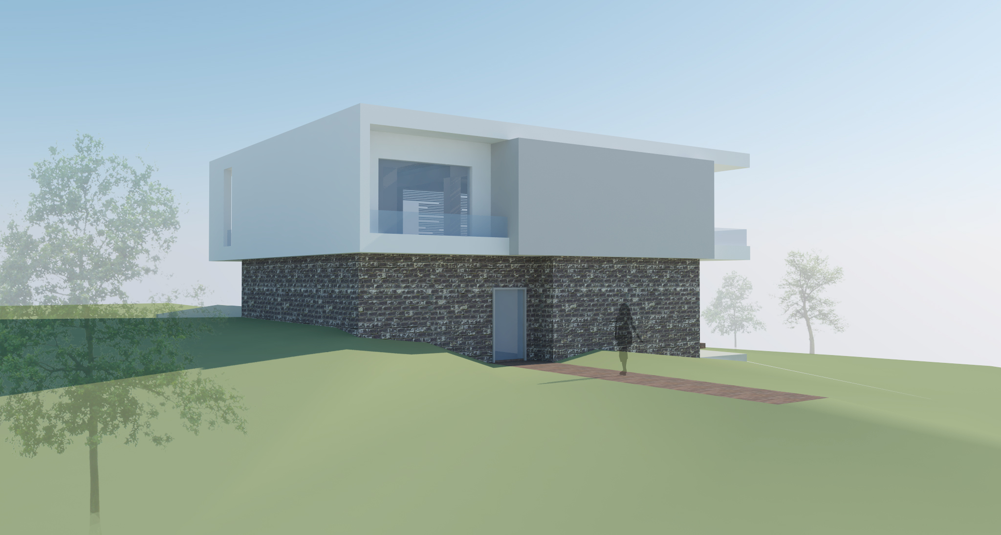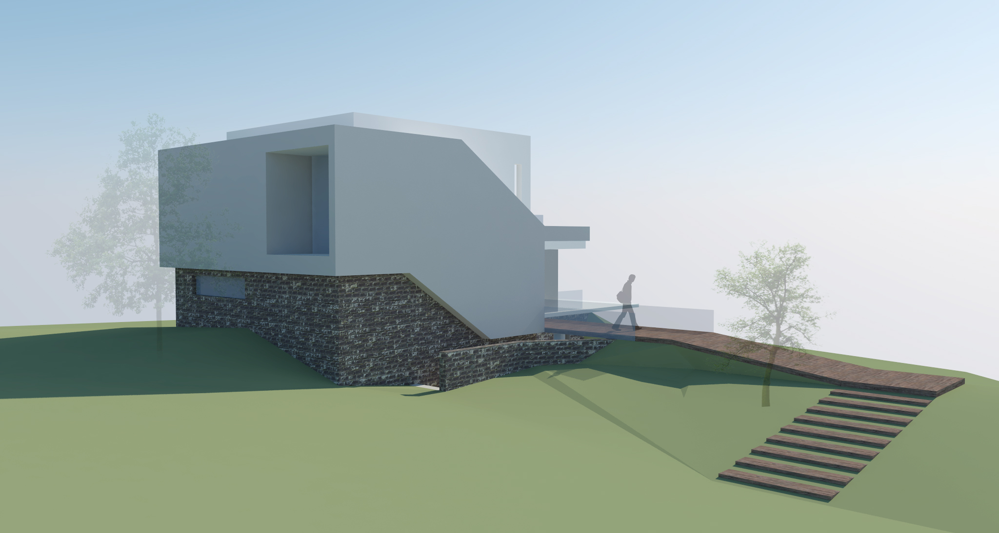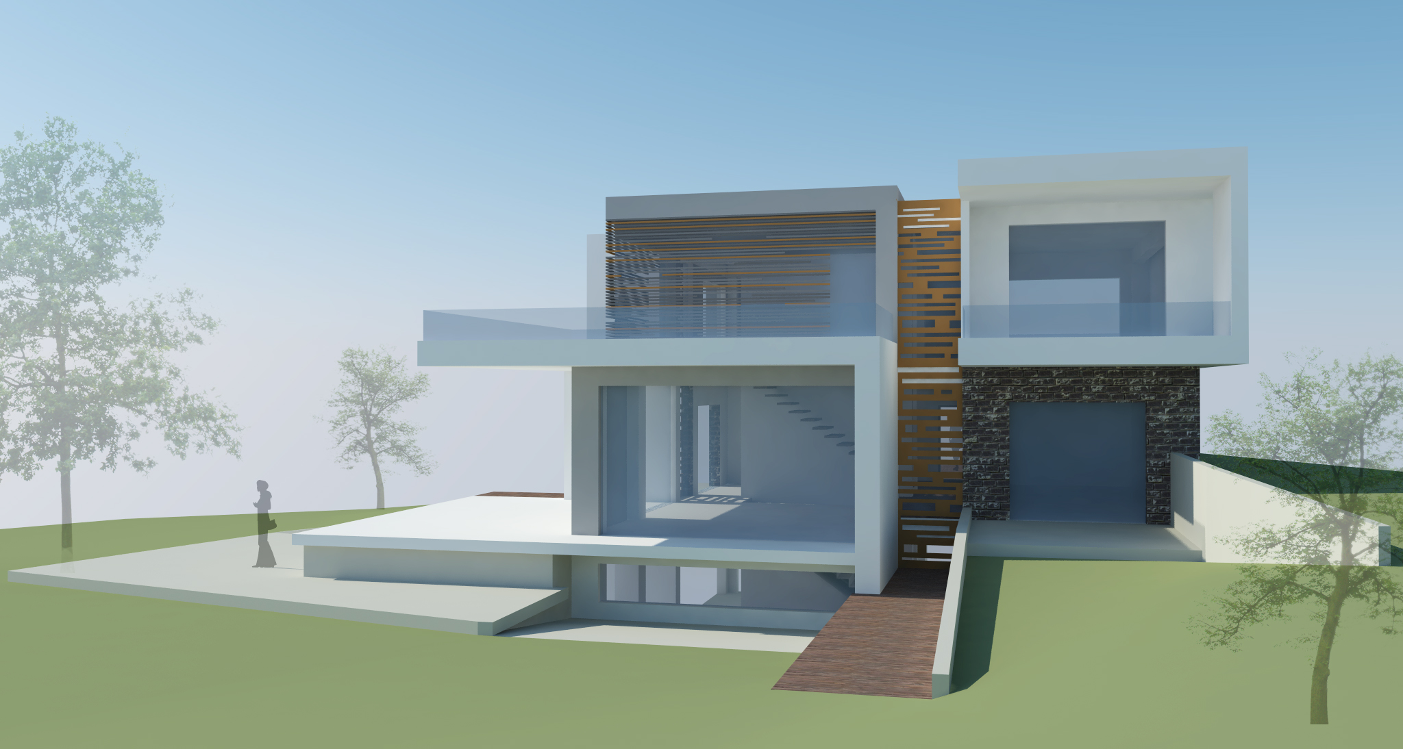 Bi-level residential complex covering a total area of 430 sq.m. The two houses are composed with the same functional organization, with the living rooms on the ground floor, at different levels, bedrooms on the first floor as well as the ancillary areas at the basement level. The same logic is followed in their morphology with axis, the simplicity and the integration in the landscape.
