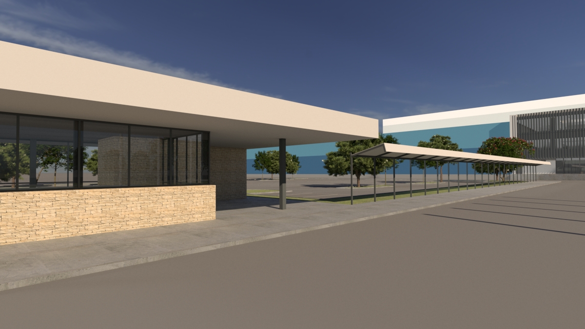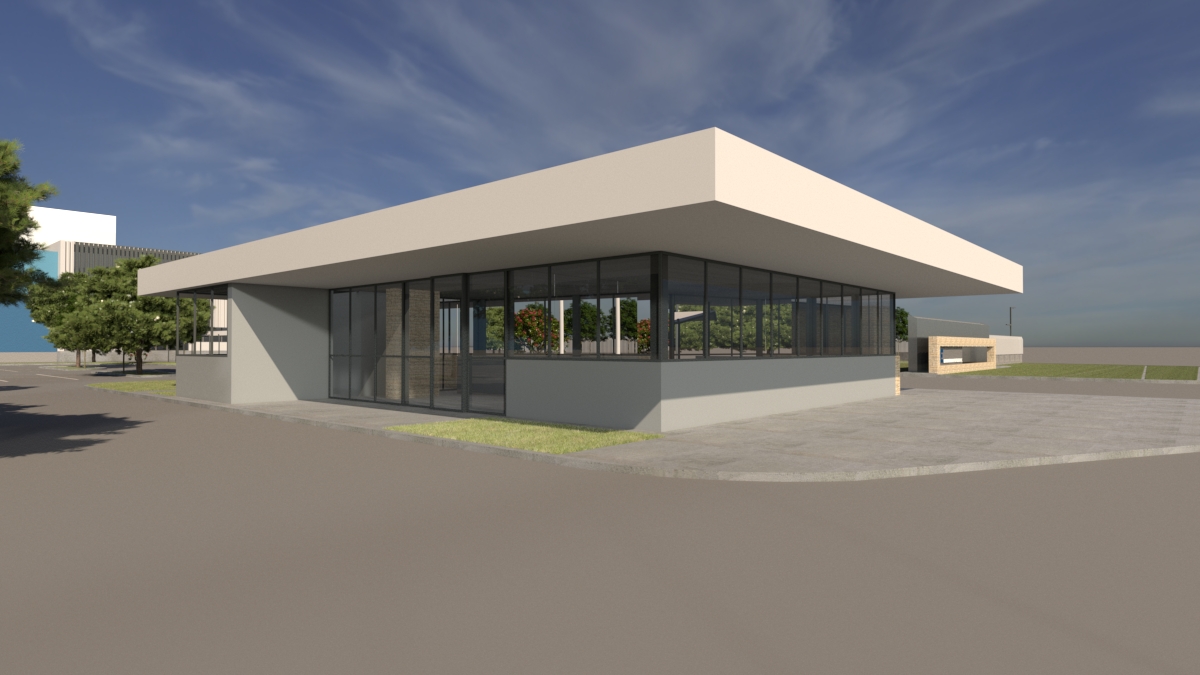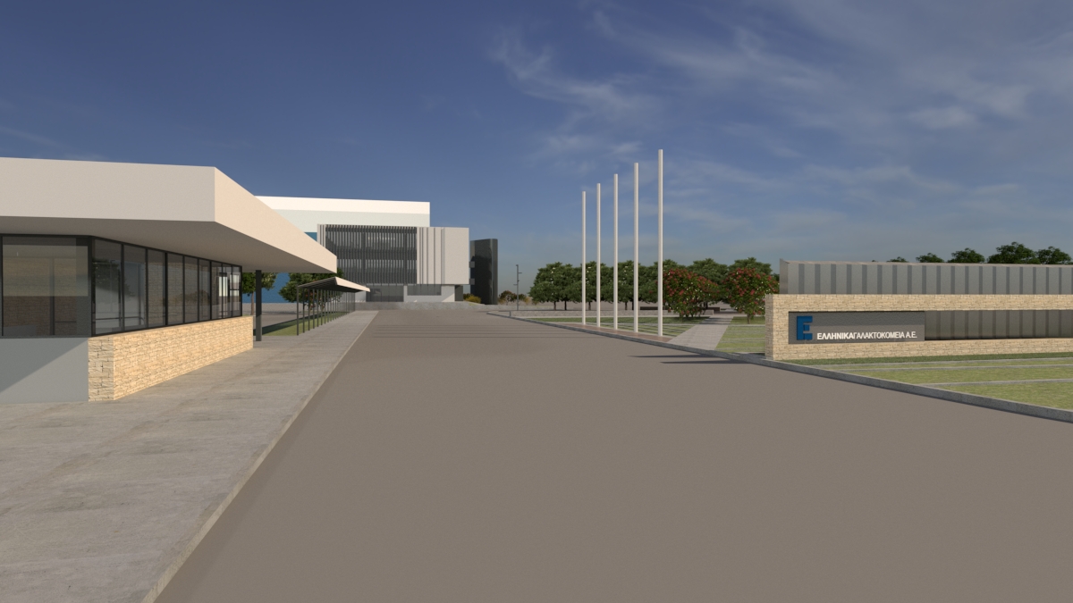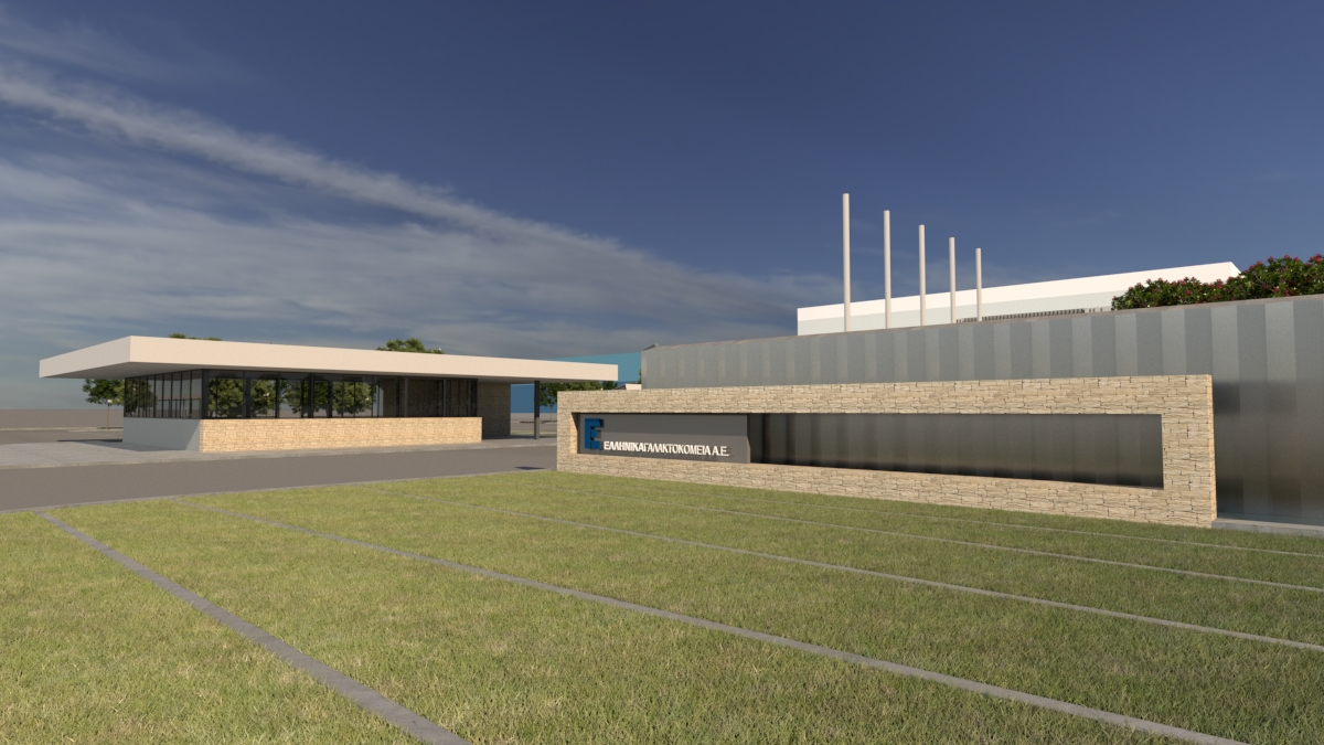Η πρόταση αφορά στον σχεδιασμό των υπαίθριων χώρων της εισόδου στη βιομηχανική μονάδα, το φυλάκιο εισόδου καθώς και το νέο κτίριο διοίκησης. Πιο συγκεκριμένα, η είσοδος στον ελεγχόμενο χώρο της βιομηχανικής μονάδας  σηματοδοτείται από ένα πάρκο συνολικής έκτασης 3250 τ.μ., το οποίο αποτελείται από  επιμέρους χώρους χαμηλής ή ψηλής φύτευσης, ένα υδάτινο στοιχείο, υπαίθρια καθιστικά και έναν διευρυμένο χώρο πλατείας/συγκεντρώσεων. Οι υπαίθριοι χώροι επίσης περιλαμβάνουν την συνολική περίφραξη, χώρο στάθμευσης 100 θέσεων και στέγαστρα.